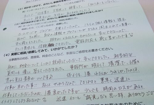 こんにちは、福岡県久留米市のおちいし司法書士事務所の落石憲是です。 もう2月に入ったのに、今年はじめてのブログです。 明けましておめでとうございます(笑) きょうのブログは、お客さまからいただいたアンケートのご紹介。 これまで、たくさんの方にアン…